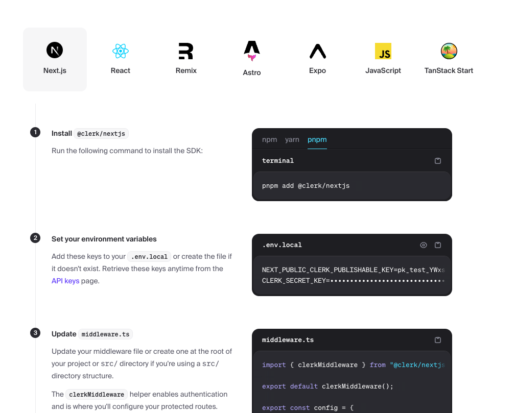 - Next.js, React, Vue 등에서 간편하게 인증(Authentication) 기능을 추가할 수 있는 서비스