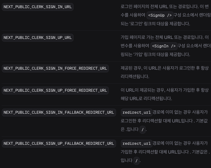 <ClerkProvider afterSignOutUrl='/'> : 로그아웃 후 라우트 경로 지정 가능