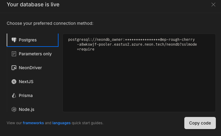 - Neon 홈페이지(neon.tech)에 가입.